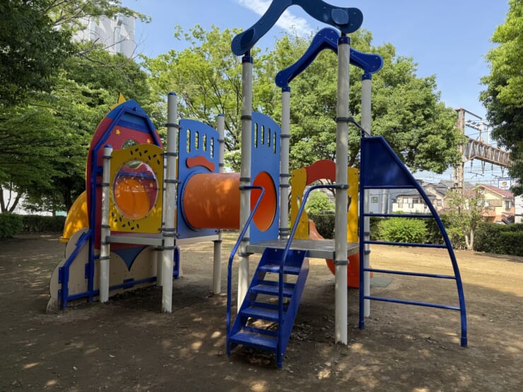 すぐそばを電車が走っているので遊びながら電車も楽しめます。