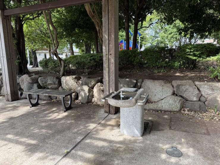 ちょっと休めるベンチや、トイレ、水洗い場もあります。