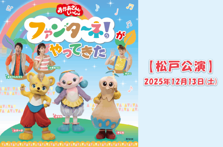 2025年12月13日(土)、森のホール21(松戸市文化会館)にて「おかあさんといっしょ ファンターネ!がやってきた 松戸公演」が開催されます。